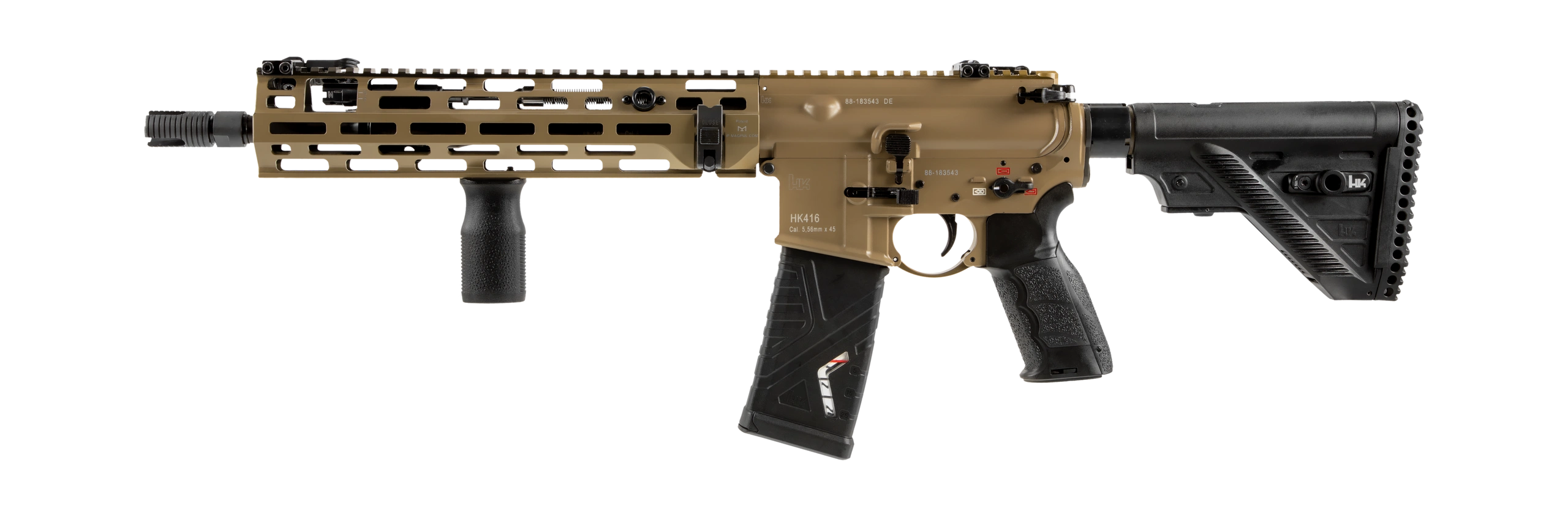 The added barrel length of the 14.5" HK416 delivers a noticeable increase in velocity over the 10.4" extending the effective range of the weapon.