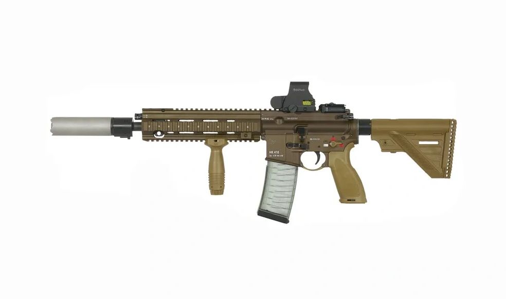 HK416 A5 with 11" barrel and B&T Rotex suppressor.