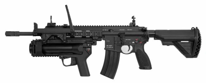 The HK416F Standard fitted with an HK269F (40 x 46 mm) grenade launcher.